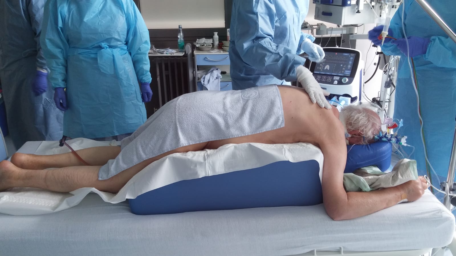 Ein ganz heikles Thema, weil die Sicherung des Tubus allerhöchste Priorität hat. Niemand möchte einen Patienten reintubieren, der 20 Stunden auf dem Bauch gelegen hat und dessen Gesicht enorm verschwollen ist.
